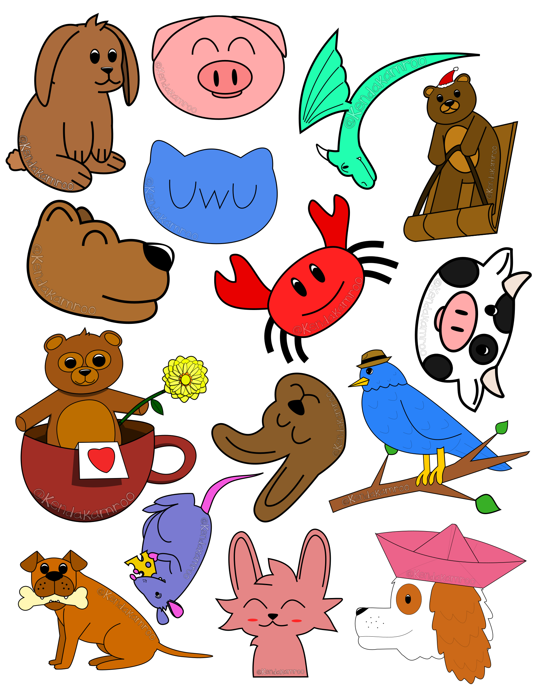 sticker production is based around 8.5x11 inch vinyl, price will scale with the number of designs, and the more designs I try to fit on the page the smaller the end stickers will be, starting from 6 designs and going up to 16, if there are not enough to fill out the entire page at the scale you want we can discuss creating multiple of some designs,
